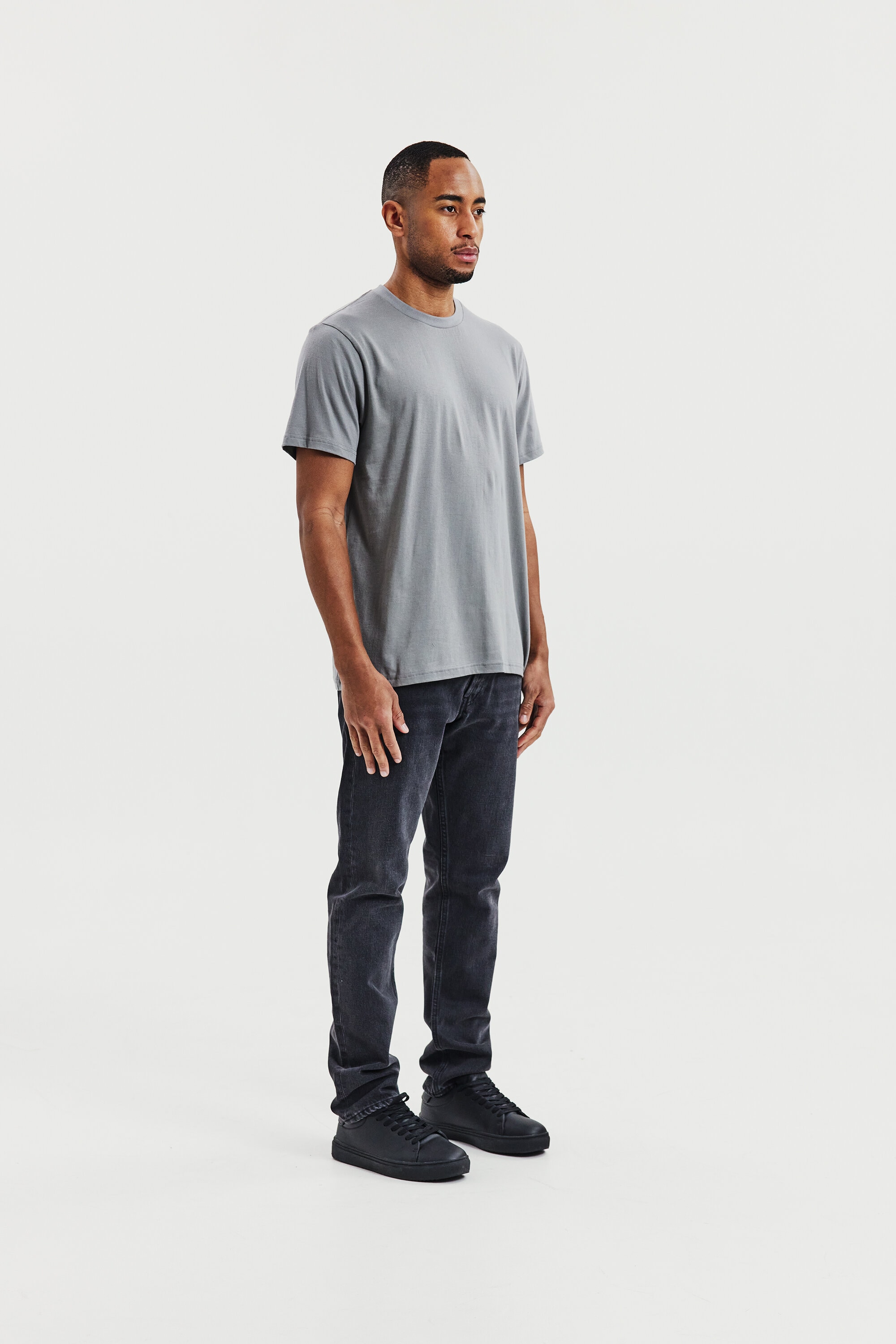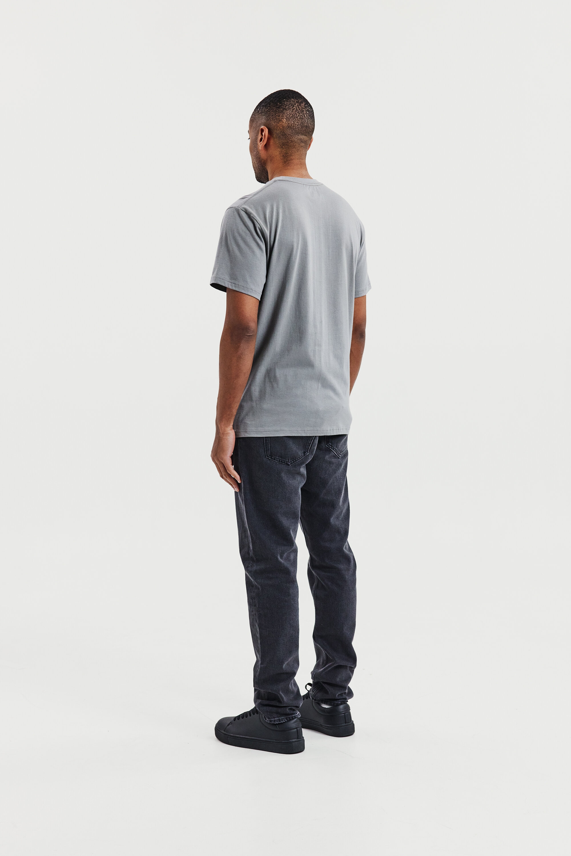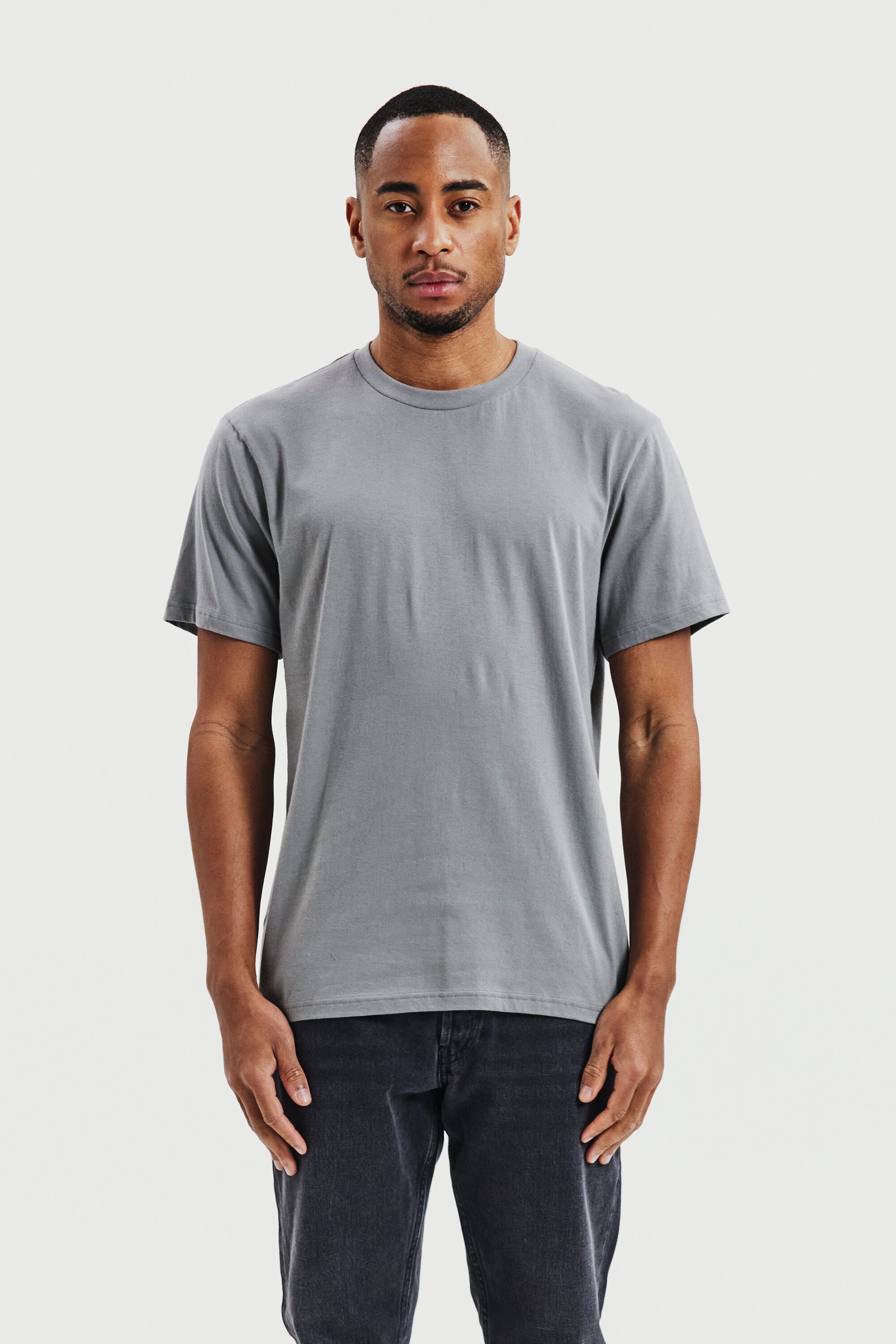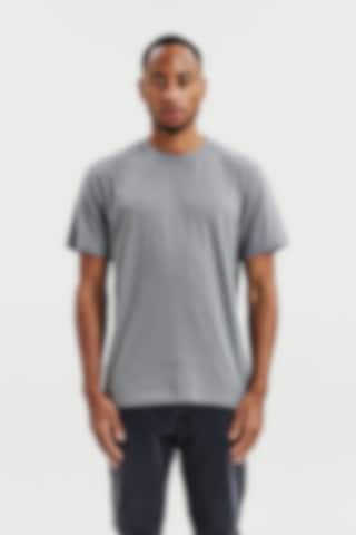 Perfekt för lager-på-lager-stil, denna ultralätta T-shirt är tillverkad av 150 GSM single jersey för en mjuk och luftig känsla. Designad med en normal, lätt avslappnad passform och ribbad halsringning – idealisk att bära under en skjorta eller tröja.