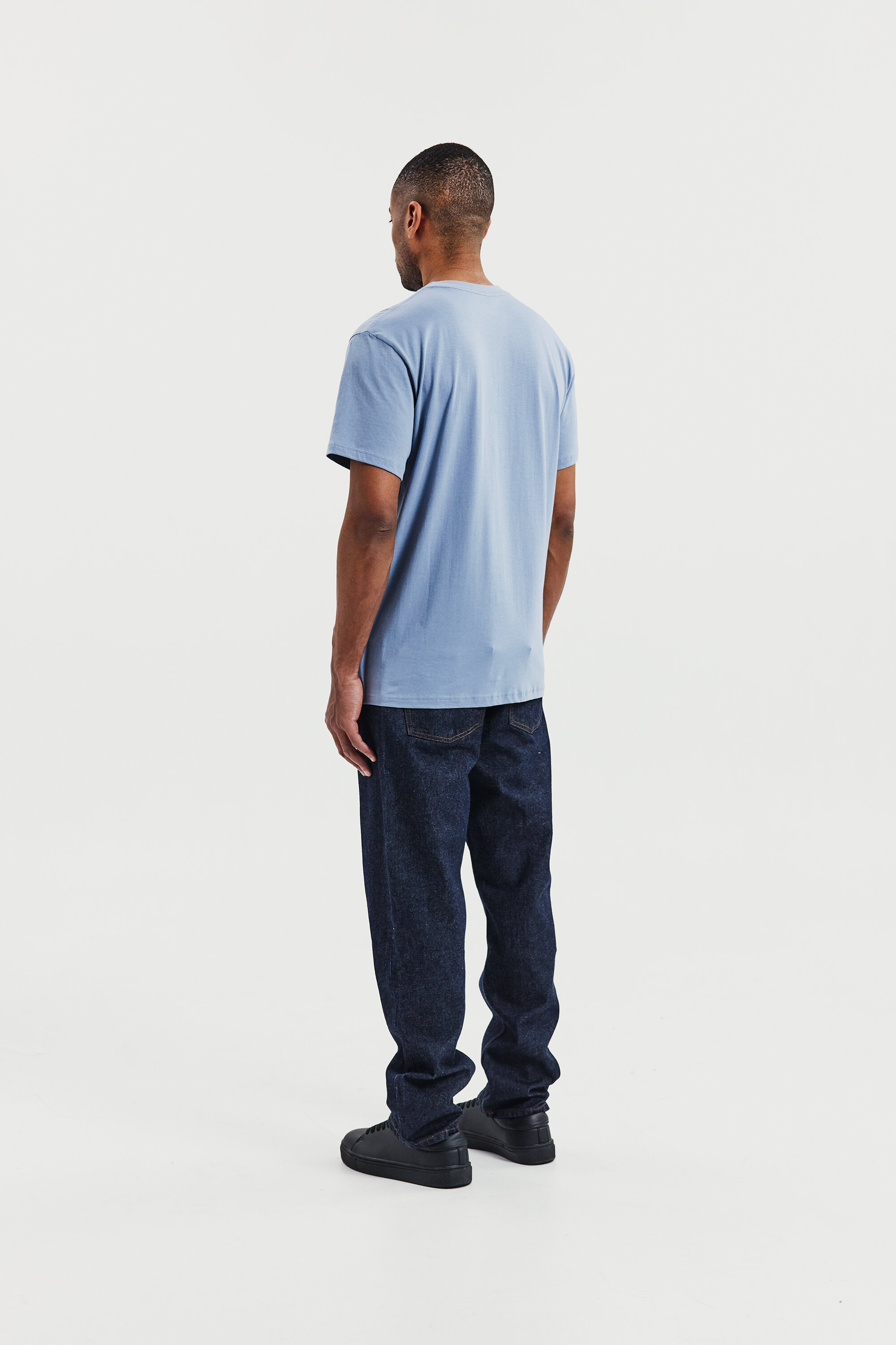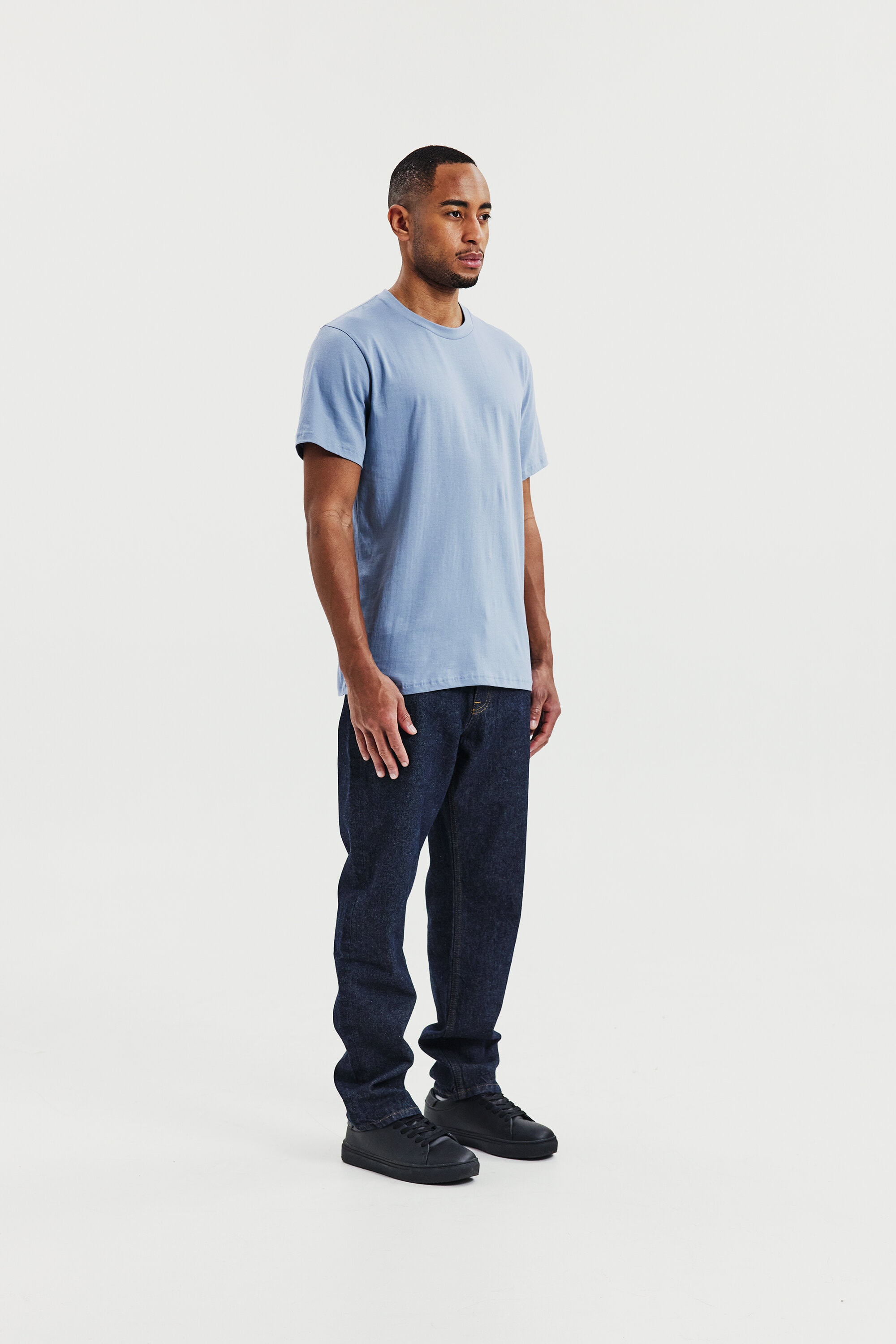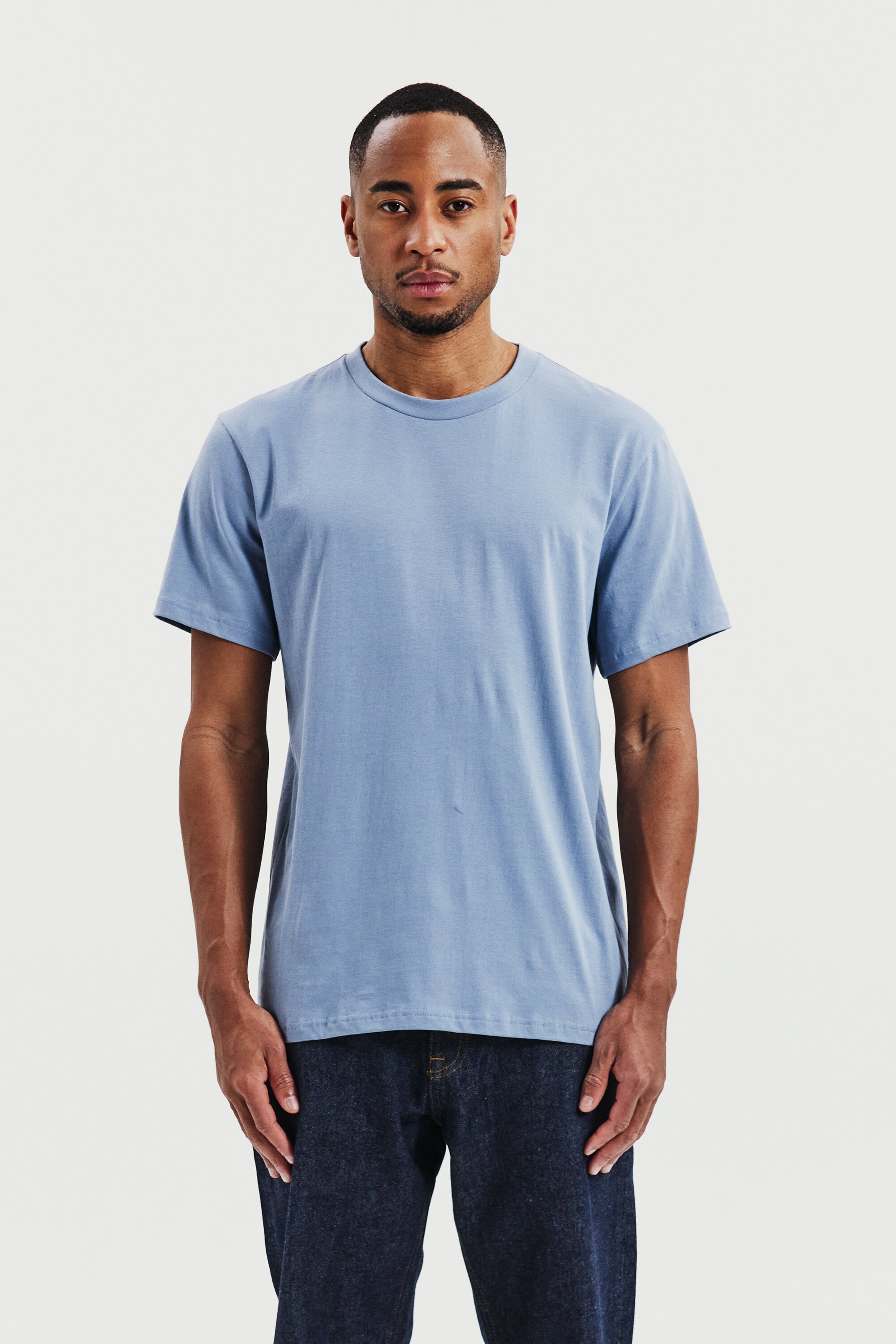Perfekt för lager-på-lager-stil, denna ultralätta T-shirt är tillverkad av 150 GSM single jersey för en mjuk och luftig känsla. Designad med en normal, lätt avslappnad passform och ribbad halsringning – idealisk att bära under en skjorta eller tröja.