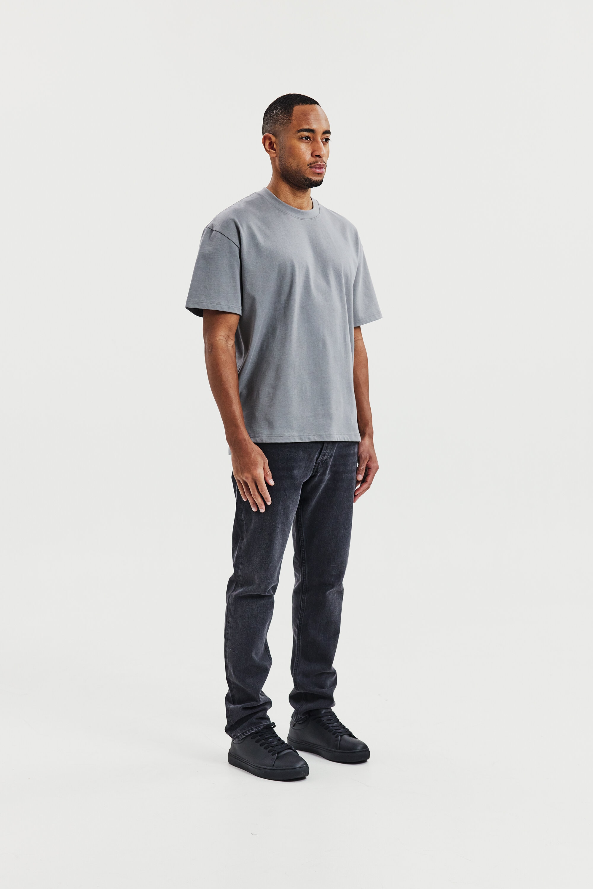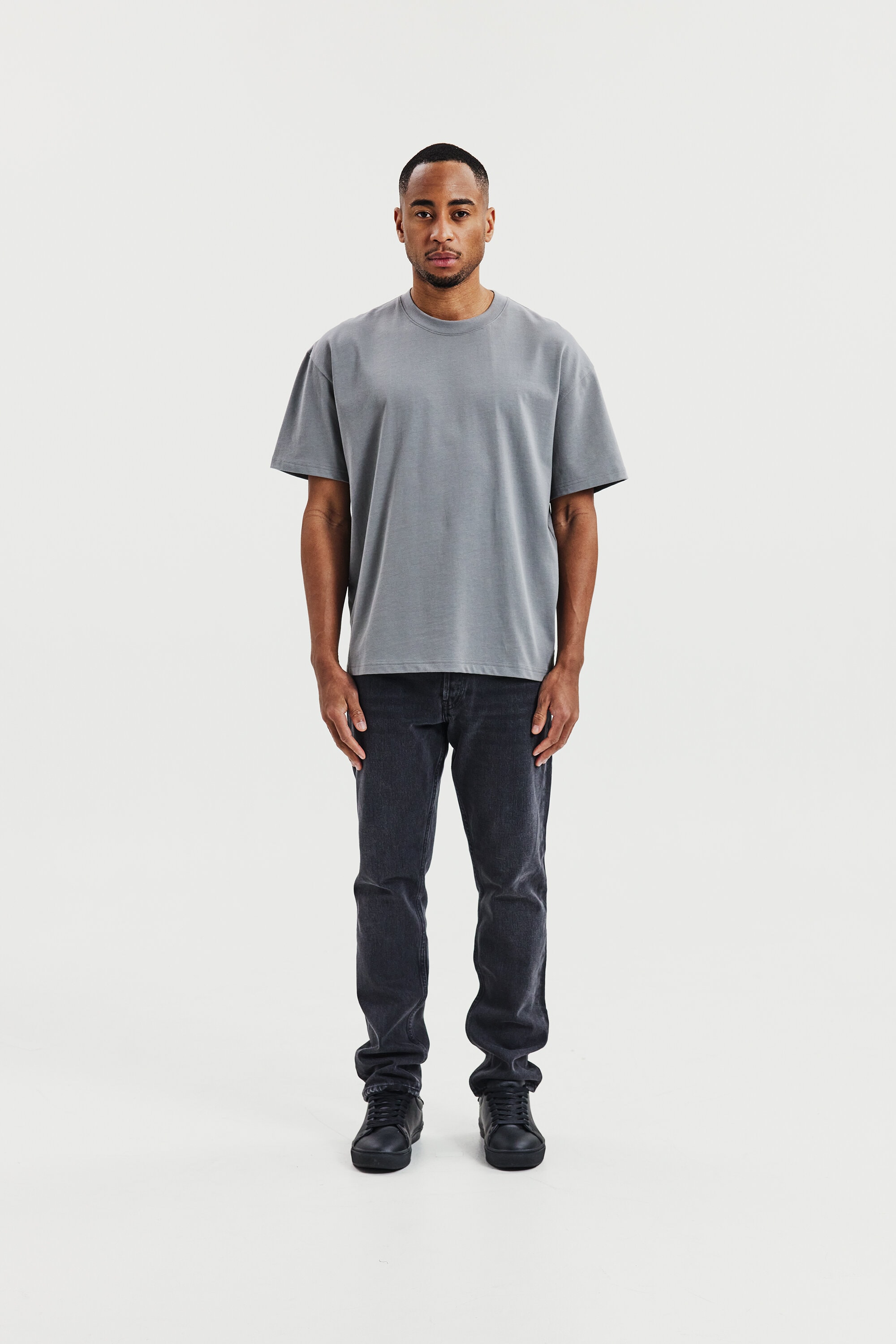 Vår Heavy Tee i vitt är tillverkad i ett kraftigt ekologiskt bomullstyg. Modellen är boxig och har något längre ärmar och bredare axlar. Bredden på T-shirten gör att den kan upplevas som något kortare än våra klassiska T-shirtmodeller. Den har en robust halsringning och snygga sidosprund. Den här T-shirten bärs bäst ensam, men fungerar även utmärkt under en jacka eller kavaj.