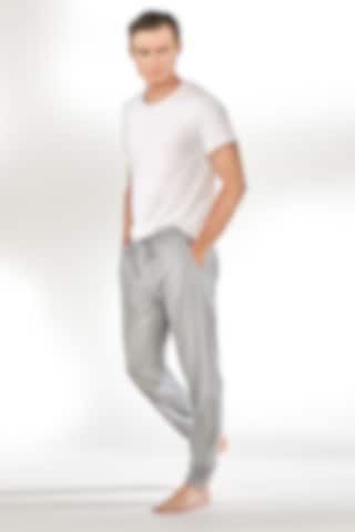 Pyjamasbyxor i en lite tunnare bomullstrikå med stretch. Midjemudd med resår samt dragsko. Diskreta fickor framtill och en utanpåficka där bak. Perfekta att sova i, men fungerar lika bra som ett tunnare alternativ till mjukisbyxor.