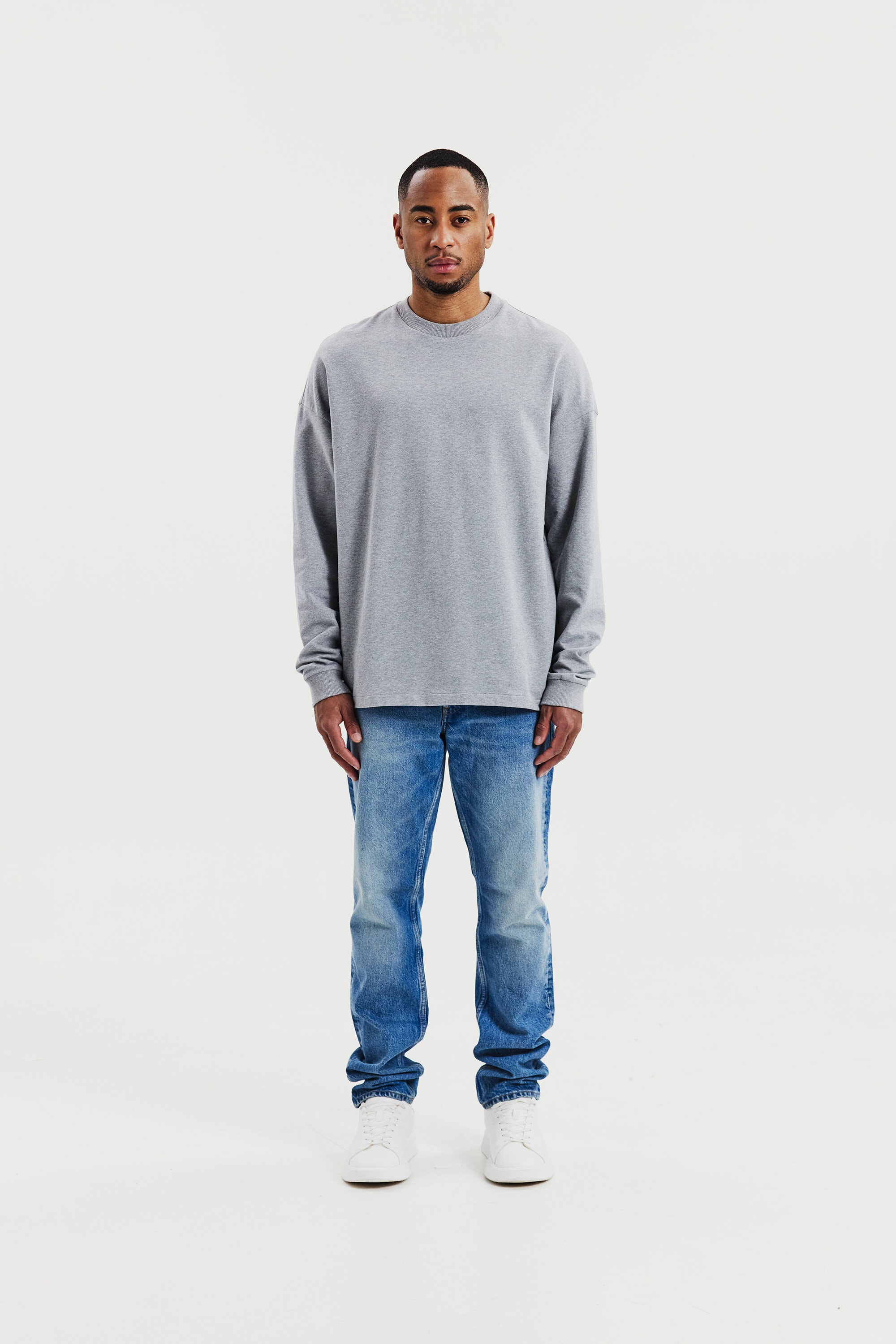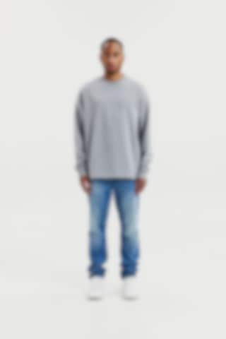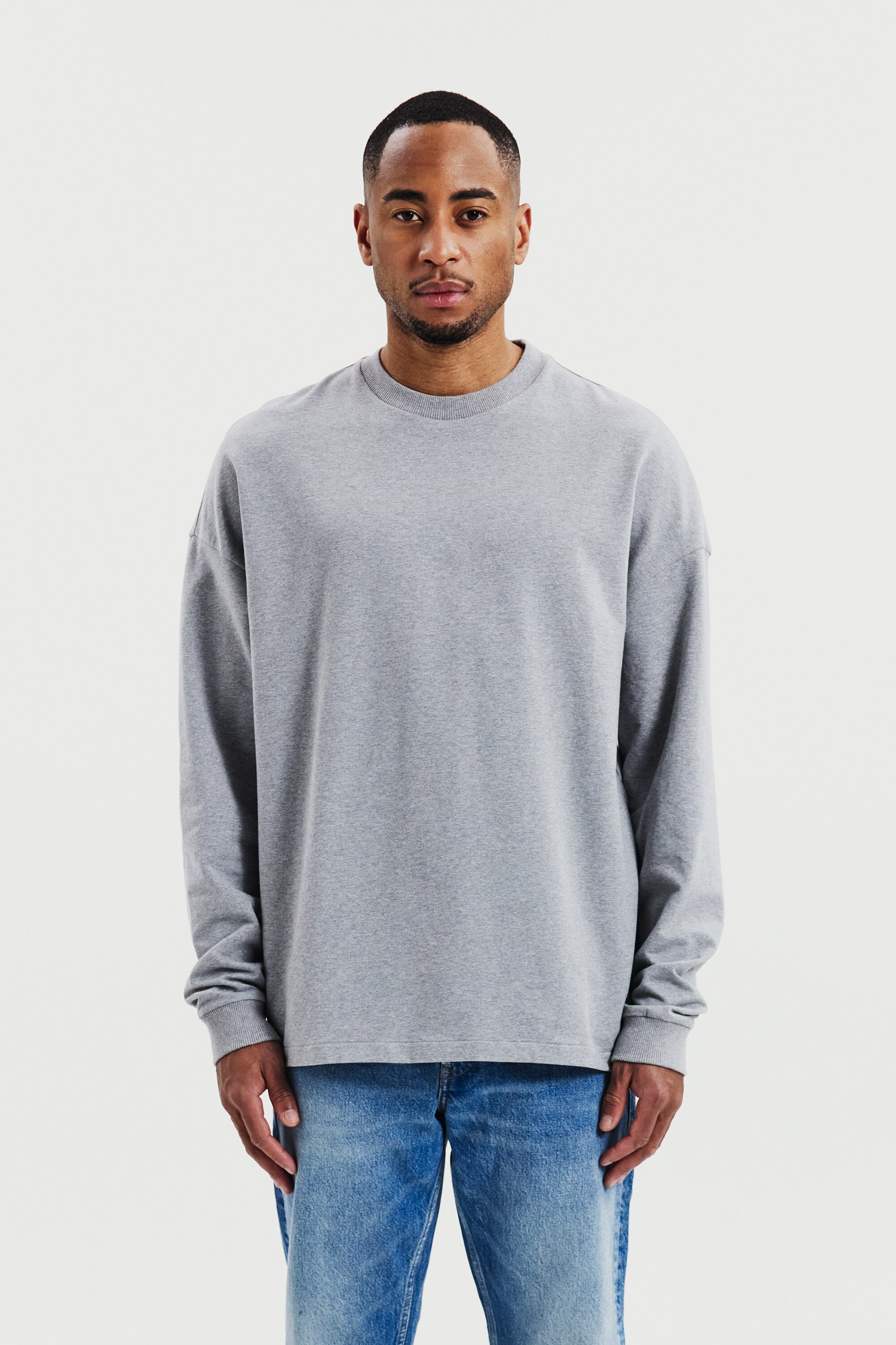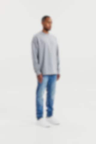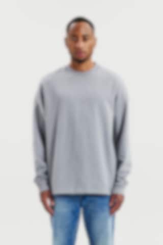 Tillverkad i ett mjukt tyg med öglad insida som ger både komfort och struktur. Den rena silhuetten utan ribb i nederkanten gör att plagget faller naturligt och ger ett mer avslappnat uttryck. Subtila ribbdetaljer vid halsringning och ärmslut skapar en balanserad kombination av avslappnad stil och genomarbetad design. Färgen grey melange gör sweatshirten till ett mångsidigt basplagg som enkelt kombineras med resten av garderoben.