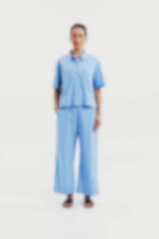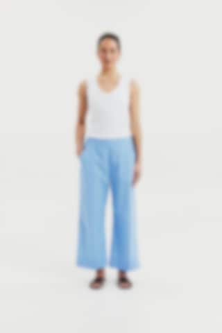 Poplinbyxor i ekologisk bomull med avslappnad passform. Byxorna har en ankellång längd och vida ben som ger en modern och ledig silhuett. Den elastiska midjan gör dem bekväma att bära hela dagen, medan sidfickorna ger både funktion och en avslappnad känsla.