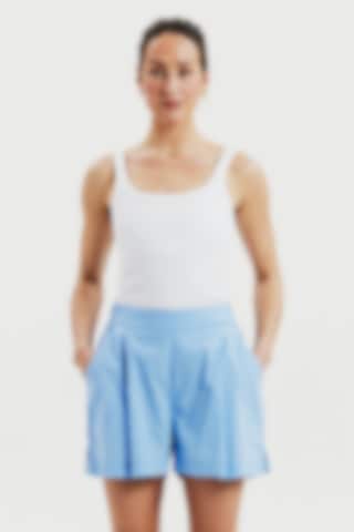Resår baktill i midjan gör shortsen bekväma att bära hela dagen och ger en flexibel passform. Tillverkade i 100 % ekologisk bomullspoplin – ett lätt och svalt material med en slät yta. Färgen Air Blue ger ett fräscht och somrigt uttryck som enkelt kan kombineras med skjortor, T-shirts eller linnen.