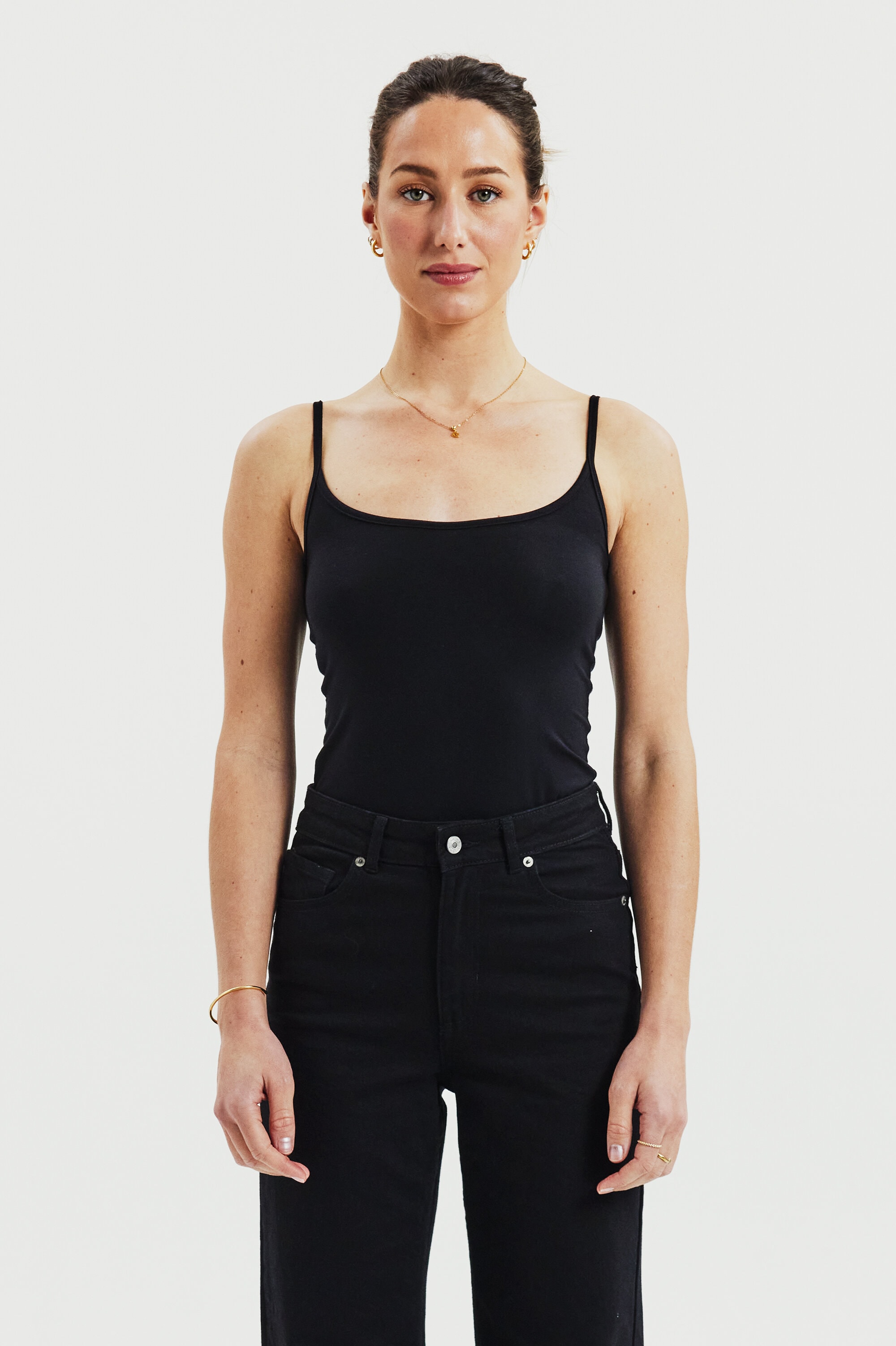 Singlet-linne med smala axelband och rundad halsringning. Tillverkat i mjuk lyocell med stretch som ger en flexibel och kroppsnära passform. Det lätta och följsamma materialet gör linnet bekvämt att bära hela dagen. Ett perfekt linne att använda som första lager under andra plagg, eller för sig själv under varma sommardagar.